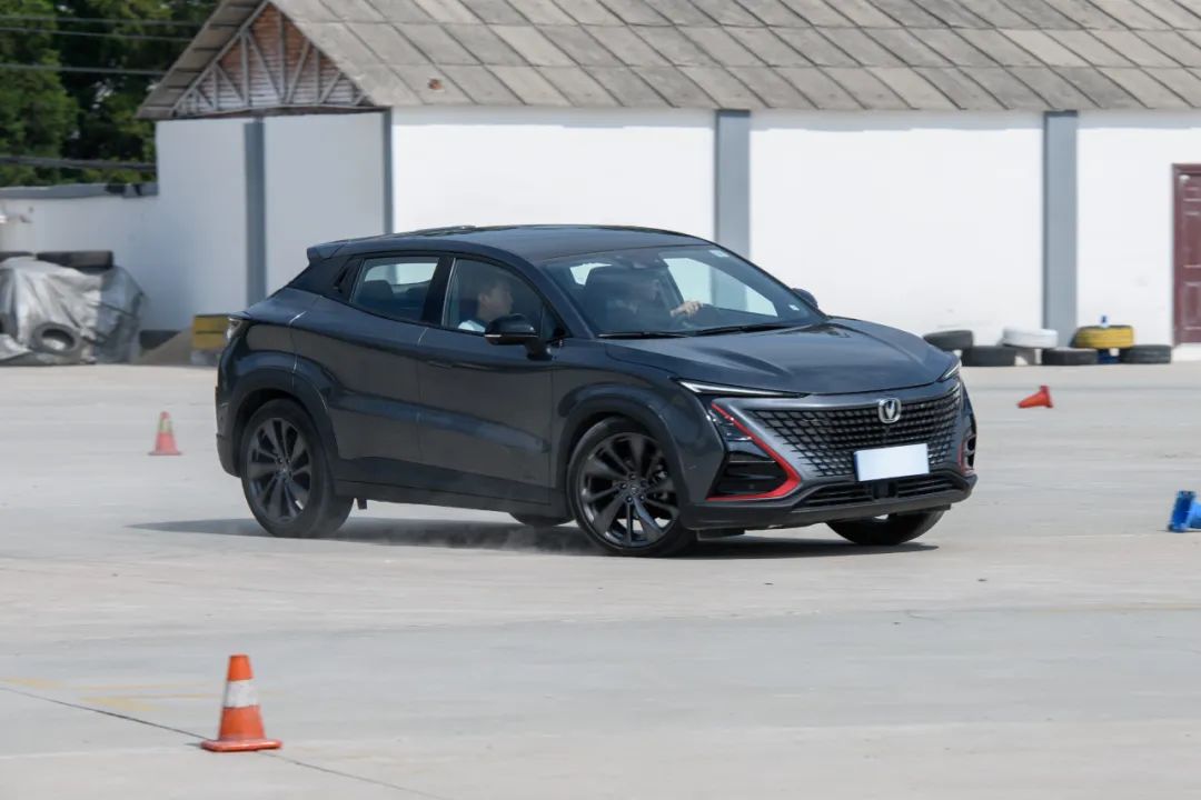 再聊回到驾驶本身,UNI-T由于其整体重心是三台车中最低的、前后轮的轮距也是最大的,避震的调校也更加偏向运动化,所以即便是在进行S形绕桩的过程中,车身侧倾也相对较小,变速箱在处于S档的状态下,即使踩到了红线升档意愿也并不是很强烈。