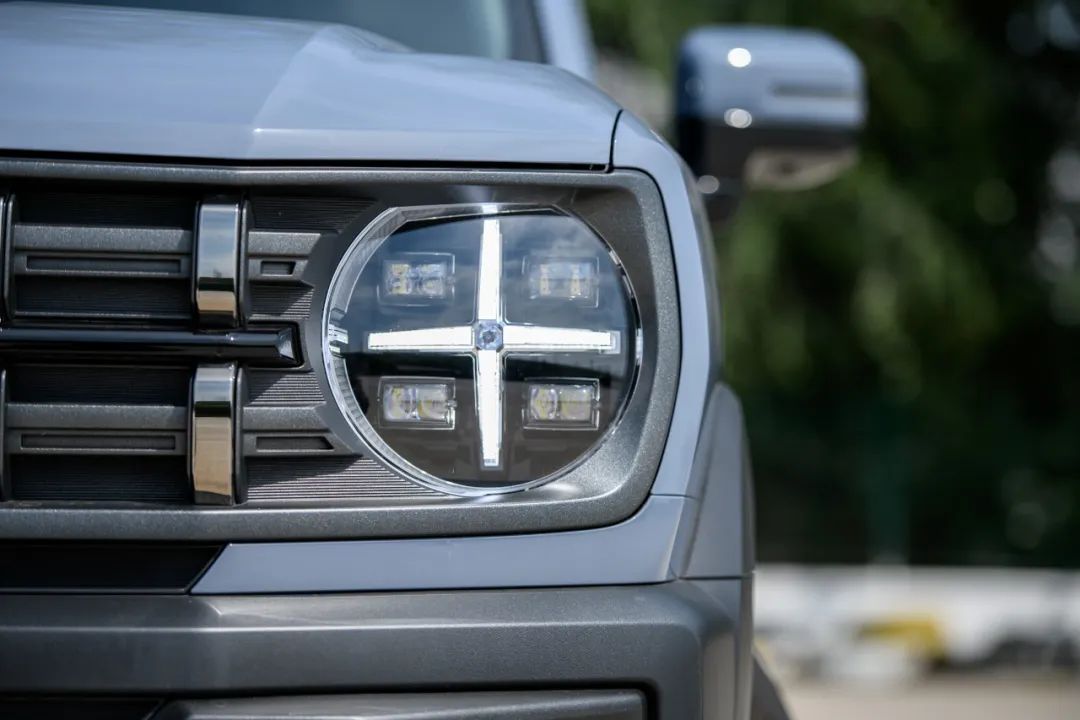 而哈弗酷狗走的则是另外一条路,全车完全采用了横平竖直的线条设计,整体方盒子的造型也和我们传统认知上的硬派越野车别无二致。尤其是横贯整个车头的格栅造型,以及两侧的十字造型圆灯,让其精致中带有一丝复古的感觉。