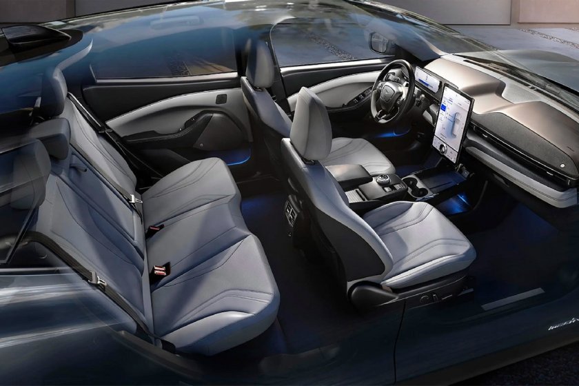同时,很多传统车企在自己的内饰科技感方面并不上心,中控屏是能小则小。福特电马Mustang Mach-E全系标配了10.2英寸全液晶仪表盘和15.5英寸中控屏,至于语音交互系统、远程控制、整车OTA等等功能,同样也是全系标配。