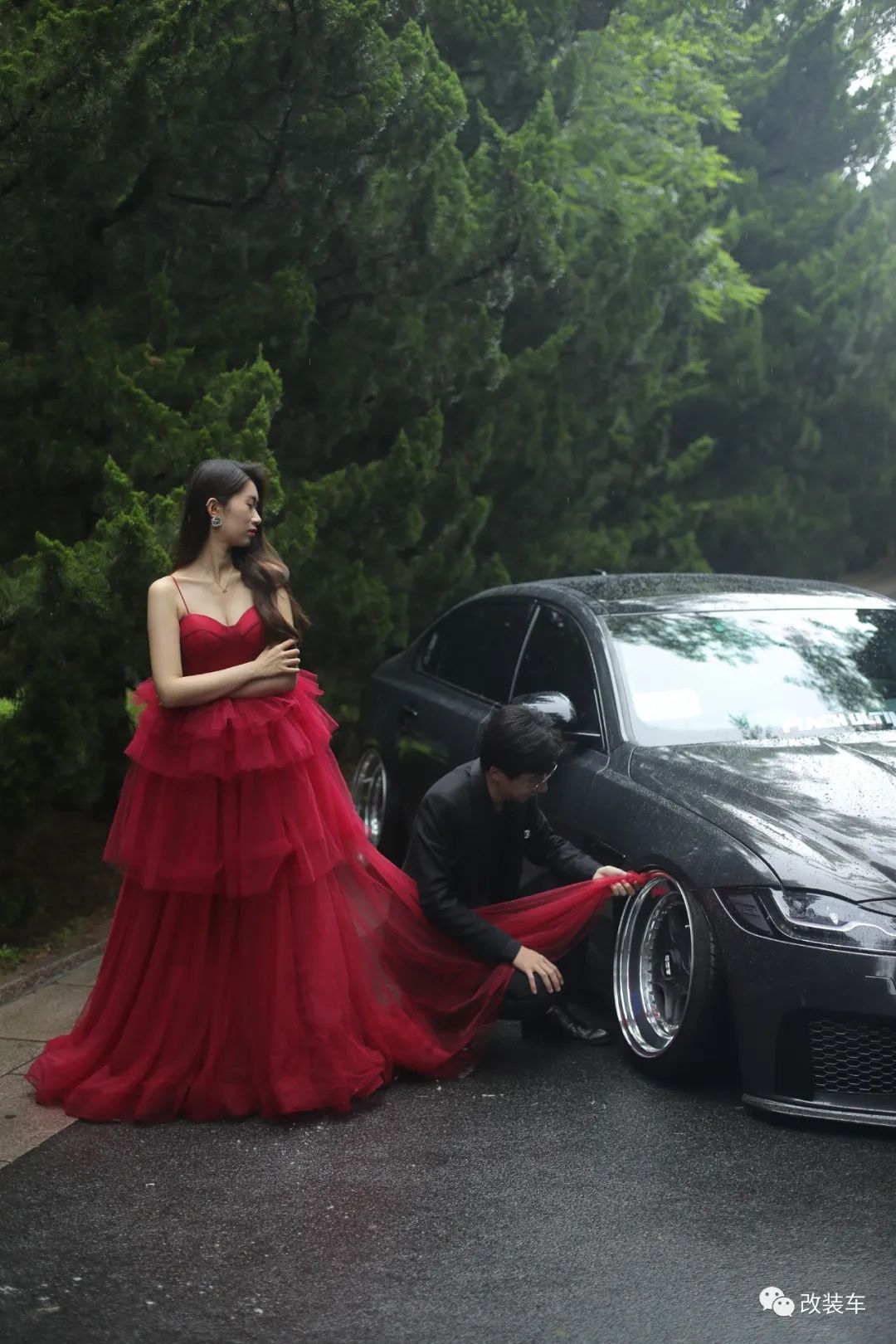 "都说玩姿态轮毂是重中之重,那套SSR SP4上车没多久后,我又开始挑选我的下一套轮毂了。经过千挑万选,最终选择了这套BBS RF 3片锻造轮毂,等它漂洋过海来到后,立马安排装车,顺带换上了一身AXPET石墨灰车身膜。"
