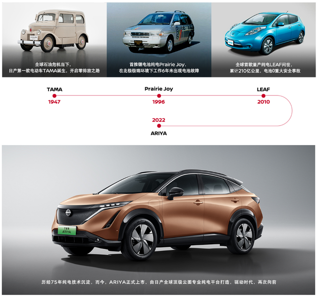 为什么说ARIYA给整个业界都泼了盆凉水,就是因为在这辆车上的“黑科技”都是围绕着安全、驾驶与舒适性去设计,研发。而这些正是为何日产品牌的电动车能够延续75年的最核心原因。在ARIYA上市发布会上,东风汽车有限公司副总裁、东风日产乘用车公司总经理山口武介绍,日产在1947年就推出了首款搭载铅酸电池的TAMA车型,1983年推出搭载异步电机的March EV,1996年打造搭载圆柱形锂离子电池的Prairie Joy,1997年打造了Hypermini,2010年上市了首款量产车LEAF聆风。特别是LEAF聆风,在全球创下了行驶210亿公里0重大安全事故的记录,至今仍无任何产品可以打破。