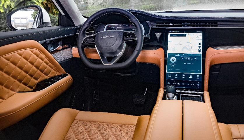内饰方面,新车配备三辐式多功能方向盘,根据配置的不同提供10英寸和12.3英寸全液晶仪表,以及10英寸和15.6英寸内嵌式纵向布局的中控屏。配置方面,新车全系标配LED大灯、胎压监测、一键启动、电子手刹、全速域ACC智能自适应续航、博世ESP 9.3系统等,顶配车型配备智能辅助驾驶系统,包含了FAP自动泊车辅助系统、LDW车道偏离预警、FEB预碰撞智能刹车辅助、EAPM油门误踩智能纠正系统、BSW盲区预警、DOA开门预警、RCTA倒车预警、LKA车道居中控制系统、LDP车道偏离修正系统。