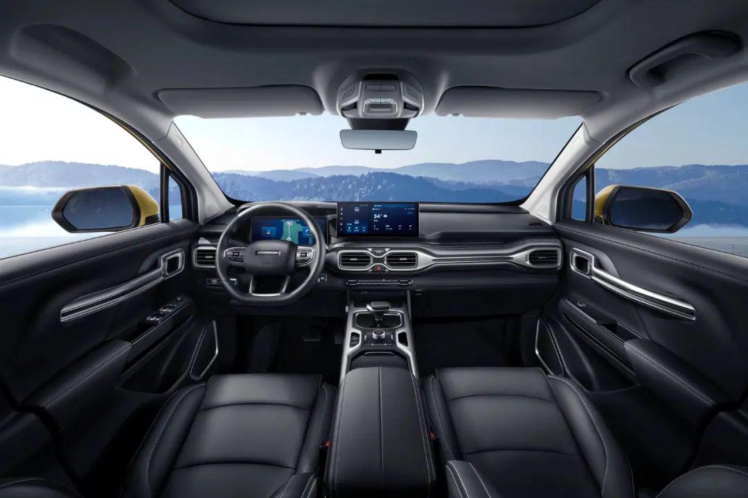 内饰方面,第一眼看上去会有种似曾相识的感觉。没错,雷达RD6基本是照搬了吉利豪越的内饰设计,配置上也配备了12.3英寸中控屏+12.3英寸仪表+HUD抬头显示,这在一辆皮卡车型来说,绝对是比较罕见的了。