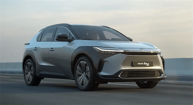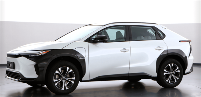广汽丰田bZ4X的外观采用远山灰拼黑色的撞色设计元素,锤头鲨式的设计前脸,搭配多眼式LED前大灯,线条硬朗,轮廓分明;多段式车身腰线颇有机甲风格。略显低趴的车身,也有点轿跑的味道。