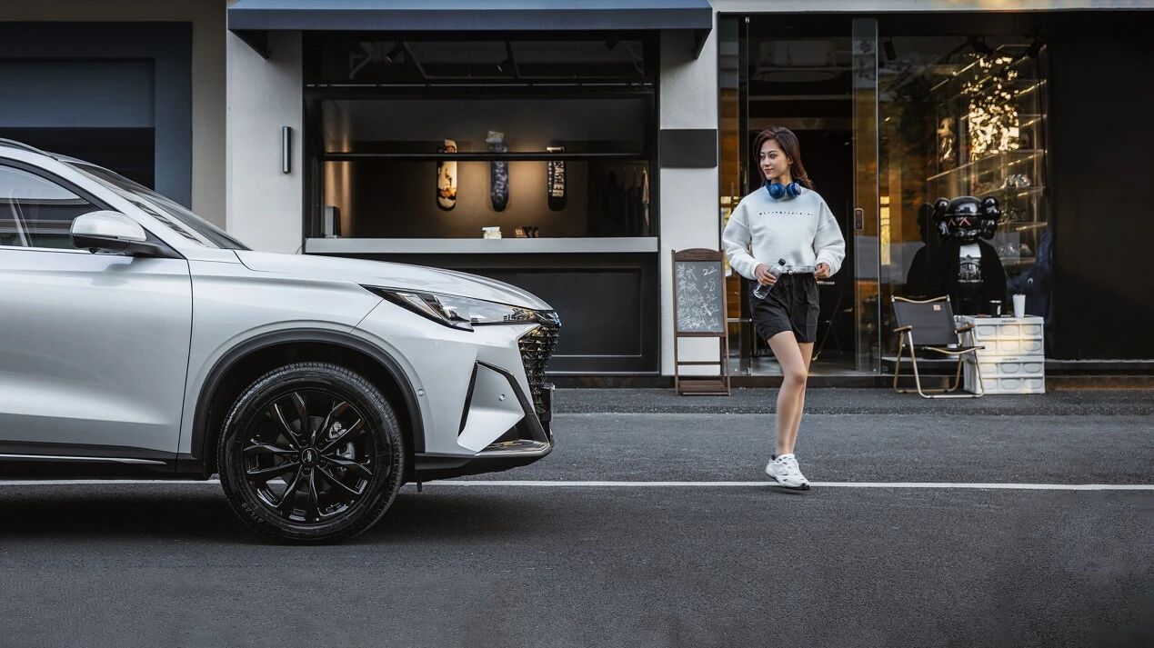 颜值即正义,欧尚X5 PLUS将“颜控”进行到底!全新塑光设计美学,2715mm超长轴距,带来0.865极致高宽比,车前机盖向前延伸36mm,并下压5°,以运动低趴体态,打造俯冲前进之势。
