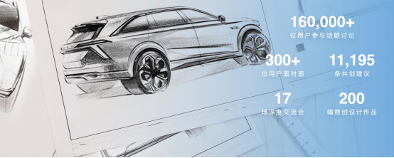 魏牌首款旗舰大六座智能SUV的造型设计就是基于用户共创而来,在为期两个月的过程中,全网共有近16万人参与互动、收集到近200幅原创设计作品。