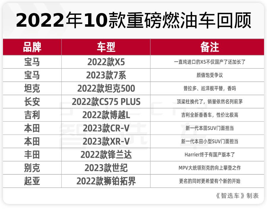 这次我们来回顾一下2022年的10款重磅燃油车,未入榜的车型不代表它们产品力不足或者销量不好,这里选的是一些比较有代表性的车型,马上给大家详细捋一捋其中的几款。
