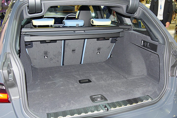 新加坡现场的 M3 Touring,除了有 500 至 1,510 公升的行李容积,并没有看到像 M340i Touring 的后厢底板止滑马达、关上尾门后防滑条就会自动凸起防止上方物品滑动。