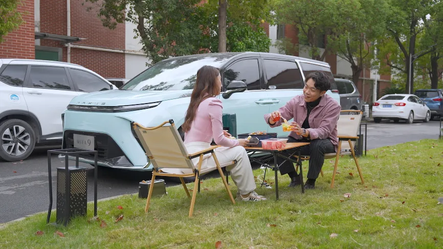 草地、阳光、沙滩……春暖花开,是时候带着亲朋好友来一场说走就走的郊游了!目前,近郊自驾加户外露营已成为最in的休闲方式之一,能为露营电器供电的汽车V2L功能也越发受欢迎。而业内常见的3kW及以下V2L放电功率,不能支持多种大功率电器同时用电,难以满足用户多样化的露营场景。MIFA 9的V2L功能放电功率达到MPV领域最高的6.6kW,小到为电灯、手机、笔记本等电子设备充电,大到同时支持车载冰箱、搅拌机、电磁炉等大功率电器启用,在露营玩法上带来更多想象力。