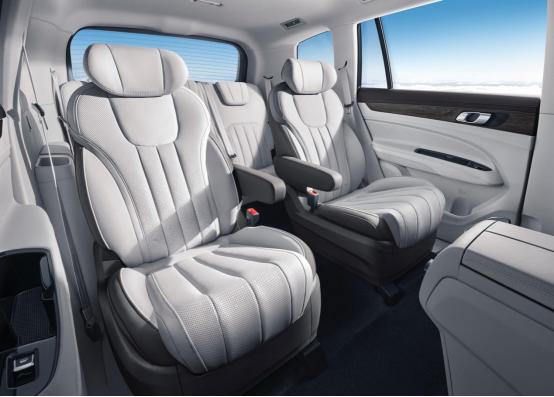 作为臻三排大七座宽适SUV,福特新领裕拥有越级车身尺寸和创新的座椅布局,赋予其堪比豪华保姆车的宽奢空间和舒适驾乘体验。福特新领裕长宽高为4905mm*1930mm*1755mm,轴距达到2865mm,傲视同侪。同级罕有的2/2/3座椅布局,赋予整车更强的独立舒适性。第二排145°舒压Pro航旅之座,配备4向调节航空头枕、3档可调通风/加热、座椅4向电动可调、可调节独立扶手、Dinamica®环保超细纤维麂皮绒,让乘客宛如置身于飞机头等舱,尽享驾乘舒适。