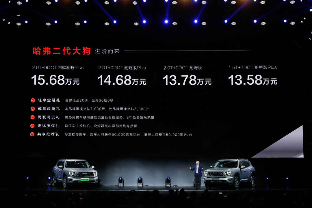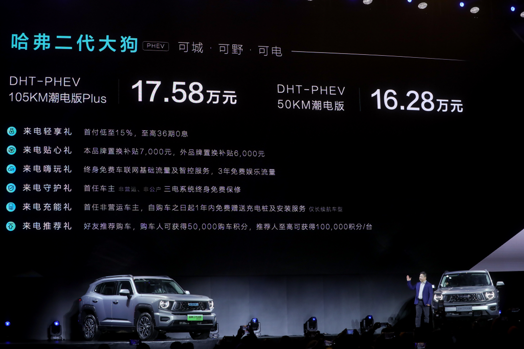 哈弗二代大狗上市,1.5T插混分50km和105km两个版本.也有2.0T加9DCT以及1.5T加7DCT的燃油版。