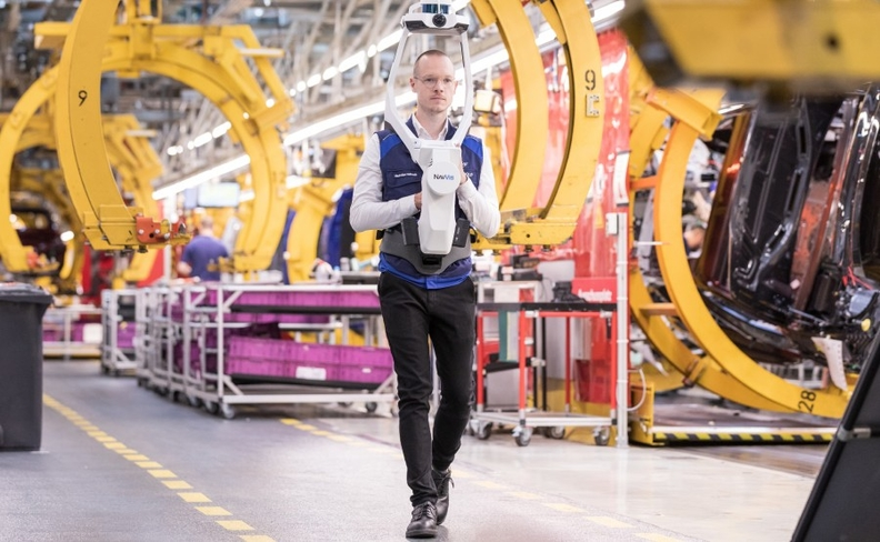 一台NavVis可穿戴式激光扫描仪在工作。这家德国初创公司正在与一些大型汽车制造商合作,对他们所有的工厂物品进行扫描和数字化