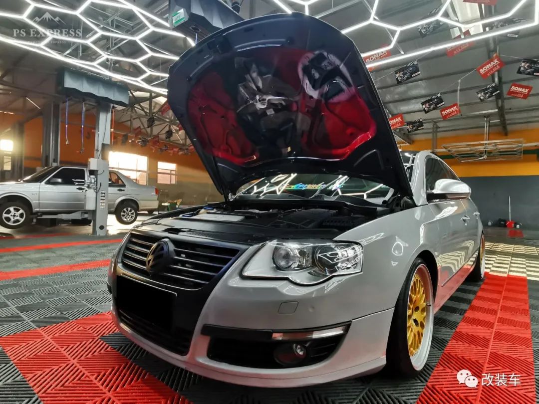 "捷达玩了一段时间后就还原了,换了一辆进口的大众迈腾3.2来玩,还是老规矩,气动、轮毂、排气,三件套安排上车!有了第一台奠定的基础,这辆迈腾就顺利多了,没有之前那么多弯路。"