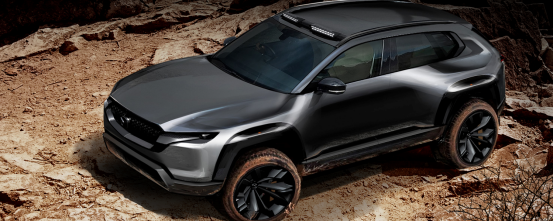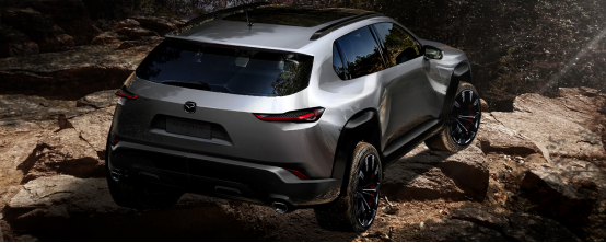 MAZDACX-50造型干净利落的尾翼板是引人注目的设计亮点之一。在方正坚固的车身骨架上,设计师大胆突出了宽尾翼板的造型。这样设计的好处是既能体现出车辆四轮犹如四只脚紧紧地抓住大地的身姿,又能给予驾乘者以极强的信赖感,表达出踏实可信的工具感。不过尾翼板在大胆外扩的同时,MAZDACX-50的整个车身又有着一种苗条的紧绷感。这种设计既能表现出大胆强悍,又能体现出流线纤细之美,充分展现了适用于大陆自然环境和户外的「魂动」设计。