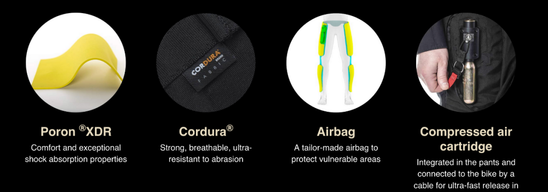 安全气囊裤可以说是对骑手身体防护的一个很好补全,考虑到目前大部分的可穿戴安全装备都在着重保护骑手的头部与上身安全,包括背包式、外衣式安全气囊,但它们却很难给予下身一个妥帖的防护,尤其在大多数摩托车事故发生时,我们最先接触地面的就是穿裤子的身体部分,受伤最严重的可能也是这部分。