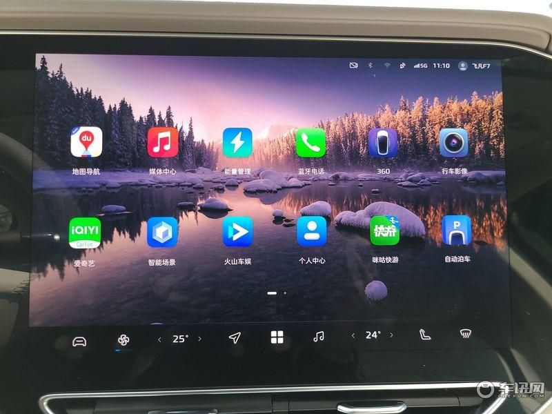 除了座舱舒适性,飞凡F7的智能化也是本次试驾的重点。依托前排43英寸宽幅真彩三联屏和后排8英寸娱乐影音屏的组合,搭配高通骁龙8155芯片和RISING OS智能交互系统,拥有在线音乐、百度地图、爱奇艺视频、咪咕快游等功能应用,且拥有比肩手机的操作页面,无任何上手难度。值得一提的是,飞凡F7还拥有巴赫3D矢量音效,进一步提升座舱交互体验。