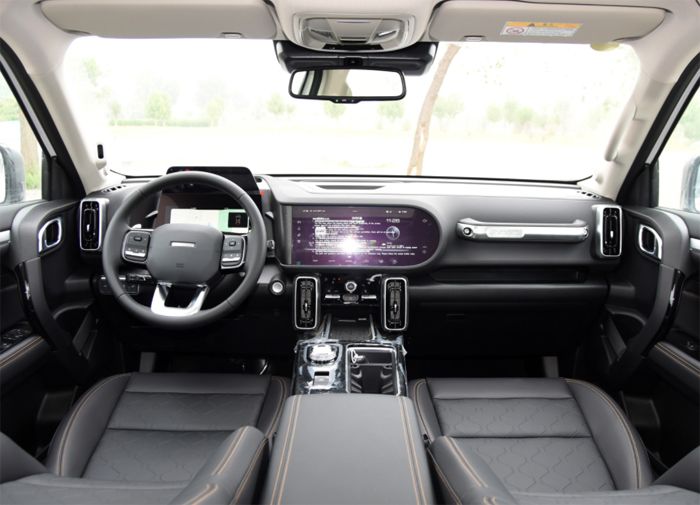 内饰方面,新车整体设计十分个性,如内饰色调采用撞色搭配,且多处使用矩形设计呼应大狗(Dog)首字母“D”。此外,新车方向盘带有换挡拨片及多功能按键,同时支持四向手动调节;全液晶仪表则采用双层设计,上层显示挡位信息,下层显示行车信息等,功能强大。