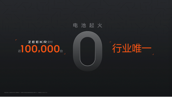 极氪式安全用事实说话,两年来,极氪实现了近十万台的产品交付,至今仍保持着行业唯一的电池零起火纪录。