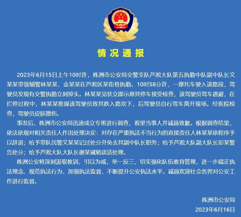 近日在湖南株洲发生一件令人气愤的事,事件经过是一个摩托车驾驶员被辅警拦阻检查,但他并有停车,而是采取了躲避绕行试图避开的驾驶行为,与此同时辅警采用了非常不恰当的处理方式,直接将骑车人推下坡道。万幸的是骑车人并没有受到严重伤害,此事一出众说纷纭,出现了两个观点,一是认为驾驶员有错在先,辅警虽情有可原,但处理方式太过极端。二是认为不管怎样,也不是辅警推人下坡的理由。