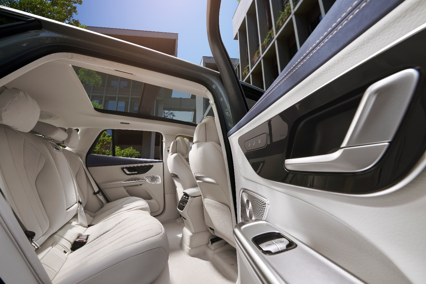 全新EQE纯电SUV针对中国客户增加10项专属配置,包括后排电动调节前排乘客座椅、舒适型后排头枕、源自纯电EQS的后排中央扶手等。可通过后排按键控制的天窗遮阳帘,能有效隔绝紫外线对皮肤的伤害和红外线、可见光带来的灼热,让驾乘者在夏日尽享清凉。