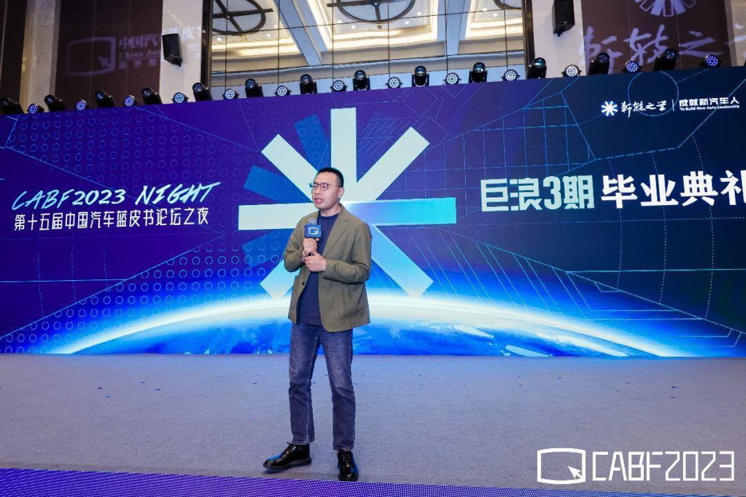 现场学员们还与在座嘉宾共同观看了巨浪3期的回顾视频,想起这些日子的点点滴滴,学员们感慨万千。上海艾拉比智能科技有限公司董事长孙荣卫作为巨浪3期班长和学员代表,分享了他的毕业感言。他谈道,毕业典礼后,巨浪3期的同学们有了一个共同的称呼——家人,未来在汽车这条路上携手努力拼搏,不管行业有多卷,要经历多少风吹雨打,大家始终都是彼此最坚强的后盾。