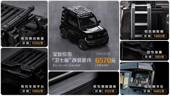 6月25日,我们从宝骏官方获悉,旗下宝骏悦也上市一个月,大定用户已经突破 5000单。为响应用户对官改产品的呼声,宝骏悦也“卫士版”官方改装套件正式发售,整套改装仅需6570元(不含安装),共提供包含侧脚踏板、侧爬梯、侧书包、侧边帐篷、车顶平台及尾翼6类套件单品。