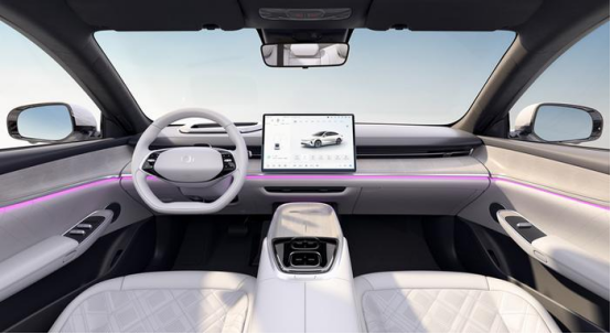 内饰方面,长安启源A07的设计也是与外观相呼应,中控台区域的线条简约柔和,带来的曲面设计使得车内看上去非常温馨。此外,浅色的内饰配色结合上车内的彩色氛围灯,整体给人的视觉质感也是非常高级。而对于科技感营造上,新车配备了HUD抬头显示、悬浮式中控屏,怀挡式换挡,非常符合当下消费者喜好。