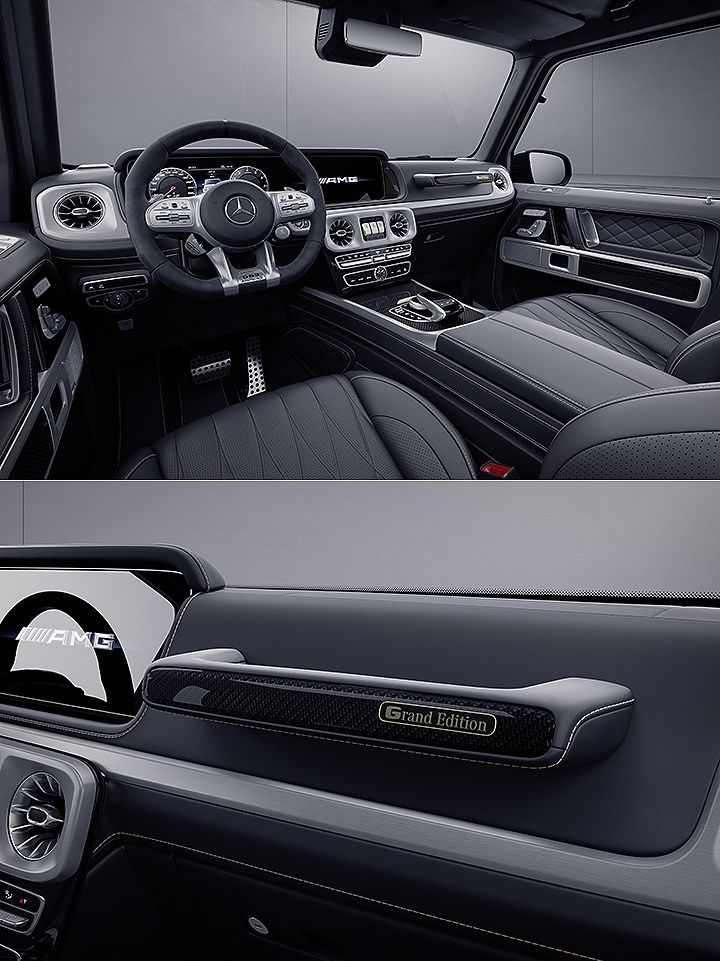 除了 G 500 Final Edition 之外,Mercedes-AMG 也推出了限量版,也就是 G 63 Grand Edition,车色就是以 Manufaktur 的削光色为基础,并加入了削光金来点缀,足蹬 22 吋胎圈组,凸显 G 63 Grand Edition 的不同身分。与 G 500 Final Edition 相同的,是 G 63 Grand Edition 同样车身上有诸多「验明正身」的 Grand Edition 铭牌,至于动力部分,也同样维持原先 G 63 的设定,G 63 Grand Edition 同样限量,并设定为 1,000 辆。
