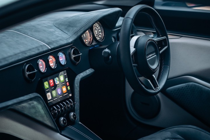 尽管单就数据,Caterham Project V 的 268 匹马力不算太大,但受惠于 1,190 公斤的轻量车体和马达电机性能,时速 0~100 公里加速只需 4.5 秒,原厂预估极速可达每小时 230 公里。Project V 搭载 55kWh 容量电池,目标拥有 400 公里的 WLTP 续航里程。该车同时也支援 150kW 直流快充,官方表示能在 15 分钟完成电量 20%~80%的充电。
