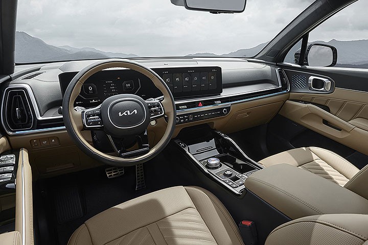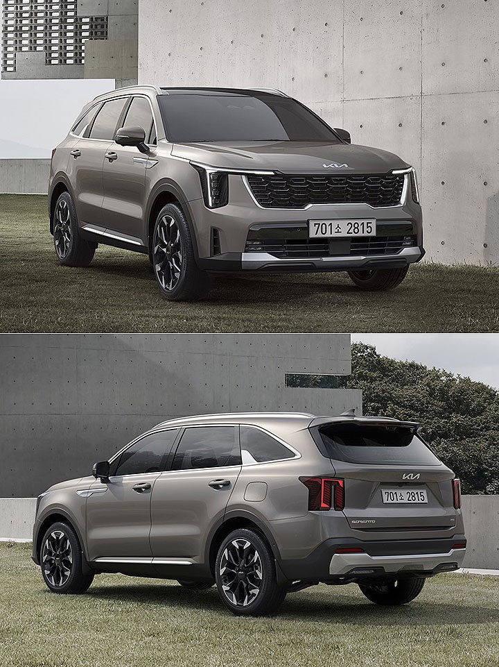 相隔不过数小时,则是有韩国车牌版本的「类型录照片」于网络上出现,从完整头尾造型来看,第一眼印象很容易就会认为是 EV9,不过水箱护罩与下方气坝造型却提醒着,这是一辆传统燃油车款;立体造型的头灯组在 LED 灯条导引下,视觉上更为立体;车尾灯组同样也是源自于 EV9 设计元素,虽然维持与小改款前相同的两道式样,但却以简约利落的 LED 灯条来勾勒视觉印象。