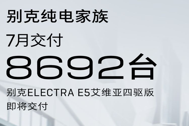 【车讯网 报道】据上汽通用消息,别克纯电家族在2023年7月份,交付新车8,692台。其中,智电大五座SUV ELECTRA E5及智电轿跑SUV ELECTRA E4在7月交付5,484台。 刷新品牌单月纯电车型销售记录。