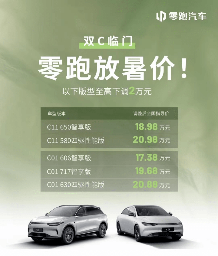 这一次,零跑再次官降,目标瞄准了17万级别的市场。从8月1日调价的车型看,零跑C系列智享版/四驱性能版均属于高配版本,进一步缩小了高配车型与中低配之间的差距,让用户以70%-80%的行业价格获得100%功能、配置和体验。