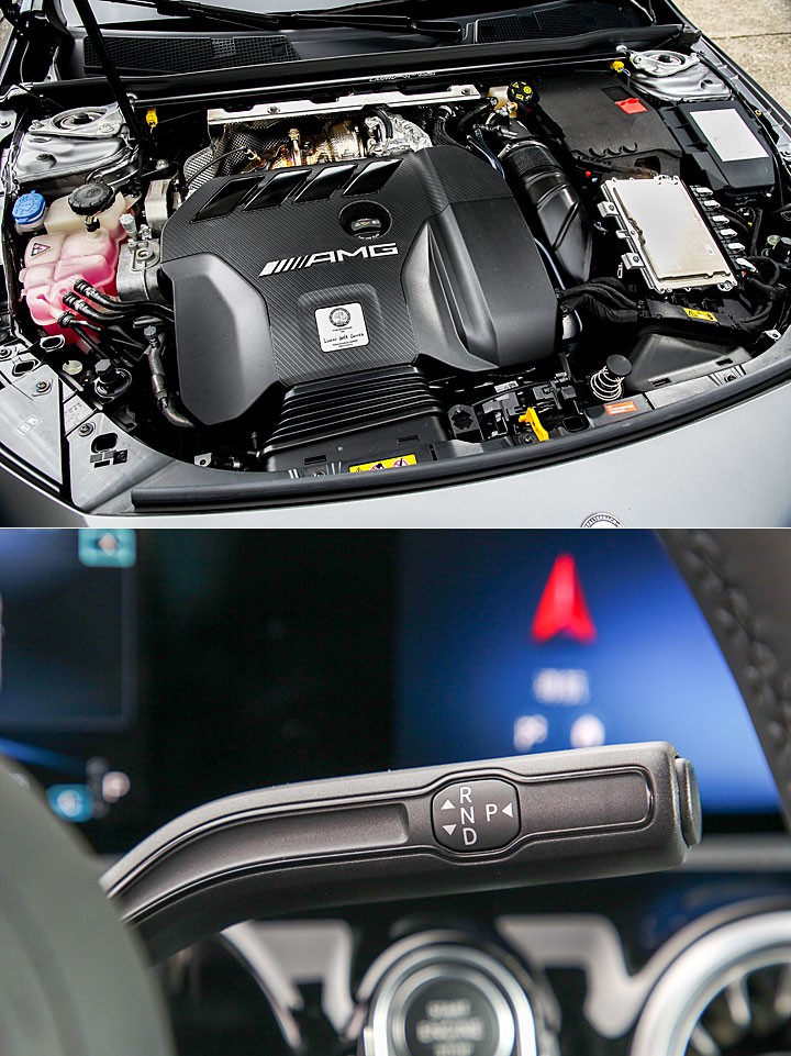 A 45 S 4Matic+在动力配置上,维持了与小改款前相同的基础设定,皆是搭载了 2.0 升直 4 涡轮引擎配置,并具备了 421 匹最大马力以及 500牛.米的最大扭矩,但比较可惜的是并未跟随小改款车型的脚步,导入 48V 轻油电科技。而在传动系统部份,则是以 AMG Speedshift 8 速 DCT 搭配 AMG Performance 4Matic+四轮驱动系统。根据原厂测试数据显示,A 45 S 4Matic+仅需 3.9 秒便可由静止加速至时速 100 公里,极速则可达到时速 270 公里。