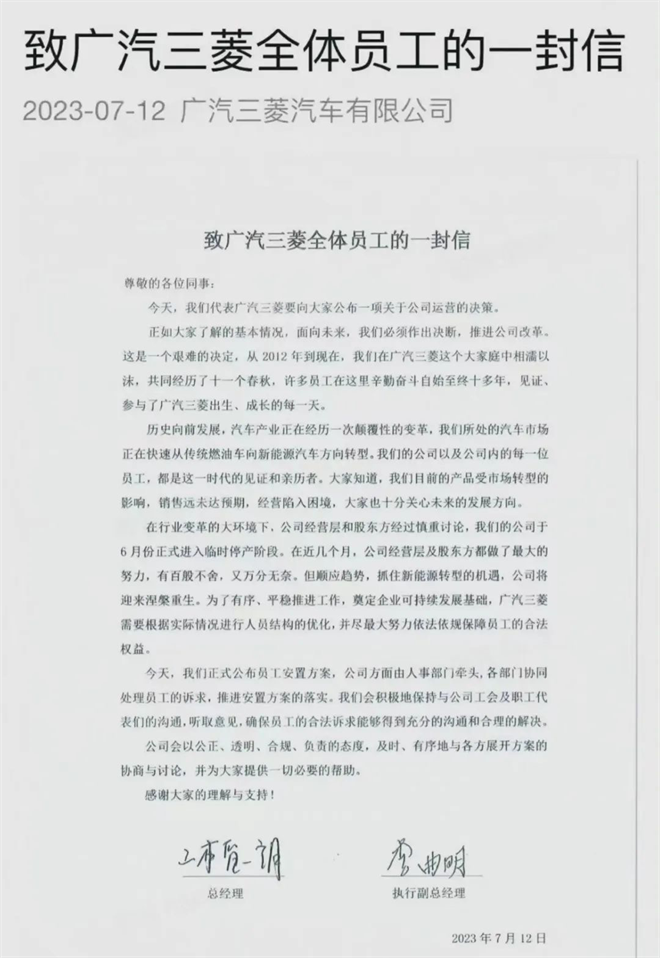 7月中,广汽三菱一纸全员信,正式宣告了复产计划的失败,并将展开裁员;月底,“表兄弟”广汽丰田也被曝“裁撤约千名员工”。不过广汽丰田“正常的组织岗位调整与人员结构优化”,还是得到了比较良心的赔偿方案。