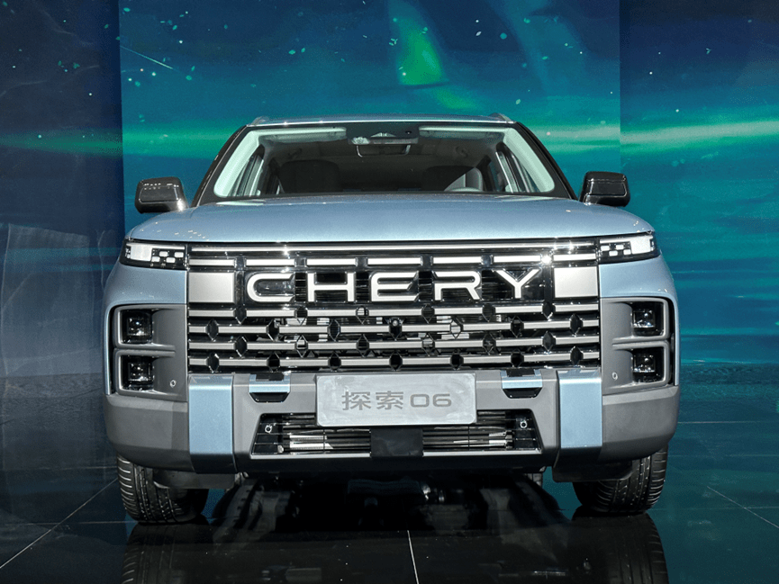 作为轻越野产品,探索06的外形既有越野车的粗犷,也融合了城市SUV的硬朗与时尚,整车诸如中网、前/后包围、车窗及C柱后方、侧裙、轮眉等多处均运用了“熏黑”处理,一双前大灯交错的参数化图案看上去像是将赛车旗的部分裁剪了下来,总体上还是符合年轻化的审美。