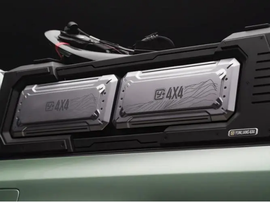 “大道飞将”还为越野、露营、旅居等不同应用场景提供了多种尾厢拓展方案,功能属性拥有无限可能。此次展出的概念版龙门架针对泛户外越野玩家量身打造,整合了信号灯、行李架及储物箱功能,通过变换顶部横梁的位置,可在上方固定动力冲浪板或其他户外运动装备;两侧拓展区域则可当作“越野救援工具墙”,或镶嵌模块化储物箱,实现常用装备的快速拿取。