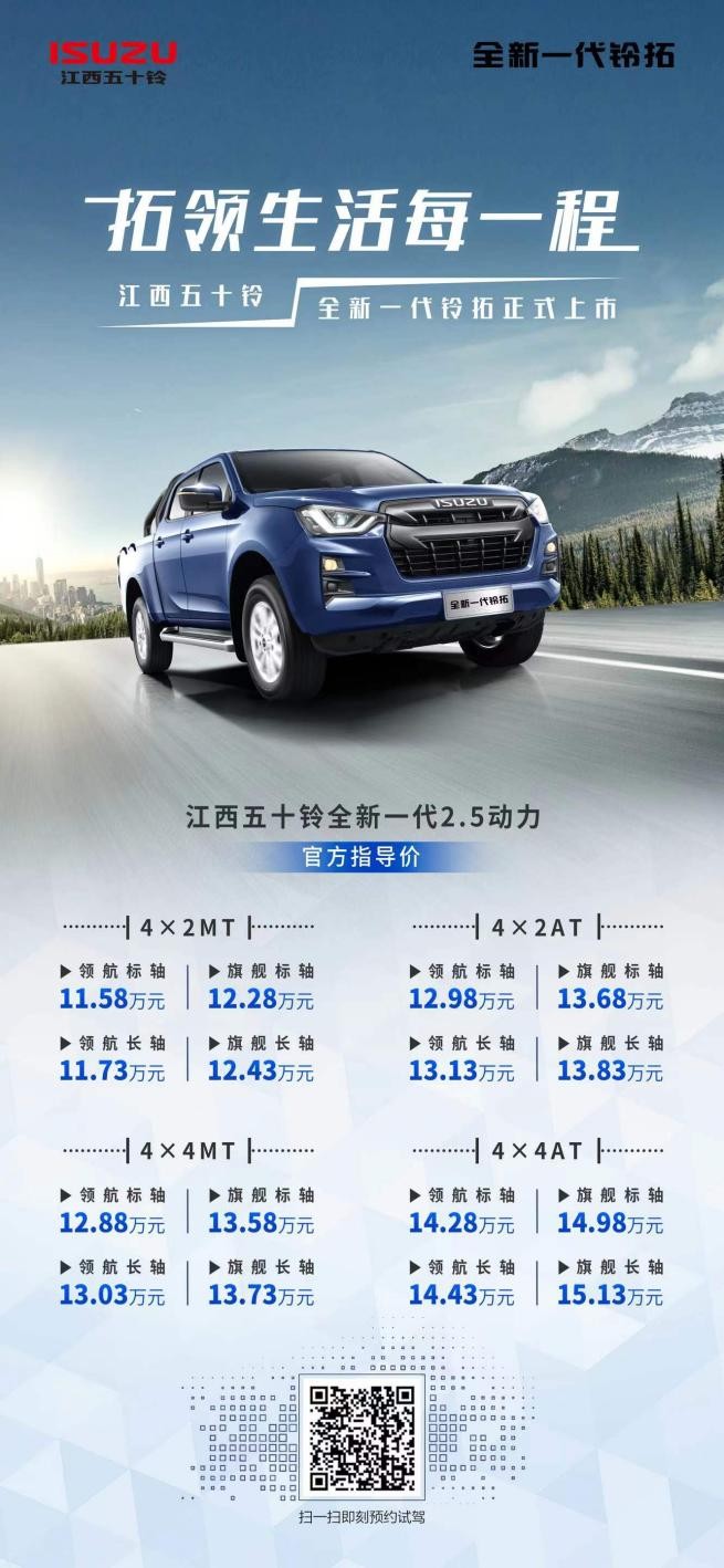 拉上货物便是生产工具,装上烤肉架就是餐具,带上鱼竿就是钓具,改装成房车就变成了家具,将用户丰富且美好的工作生活具而体之的全新一代铃拓,也公布了自己的价格,全新一代铃拓拥有两驱、四驱、长轴、标轴、手动挡、自动挡等组合配置的16款车型,丰富的配置既能够满足所有用车需求,亦能涵盖所有用车场景和用户喜好。现在购车更有3000元不限车型置换补贴以及两年免息金融政策,购车轻松无压力。