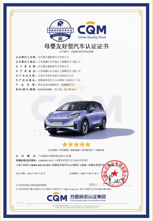 每一口呼吸都算数,让宝宝健康才是真正“爱的礼物”。极狐汽车考拉首创母婴级健康座舱,为宝宝打造出可以“健康呼吸”的“纯净儿童房”。以车内有害物质控制为例,考拉在国标限制8项物质基础上,新增了对早期儿童发育危害较大的3项物质的控制。采用吸附降解技术,在国标25℃常温测试下,上述11项物质有6项呈零检出状态。甲醛含量仅是售价40万至60万诸多豪华车的1/3,是国家一类住宅标准的1/14。基于这样的健康实力,考拉最近还获得了“母婴友好型汽车”五星权威认证,成为行业里首个获此殊荣的车型。