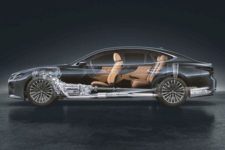 随近年来竞争对手广泛应用的后轮转向系统,过去仅在 LS 后驱车型上提供,于 2024 年款更新后,扩增搭载至日规 AWD 车型上,而 LS 500h 车型则较过去增列紧急外部供电系统 ; 据原厂表示,新年款 LS 针对前后悬挂强化,以提升刚性与车身转向反应,并调整排气管连接车体的橡胶材质角度,达到降低震动传递进车室的效果。