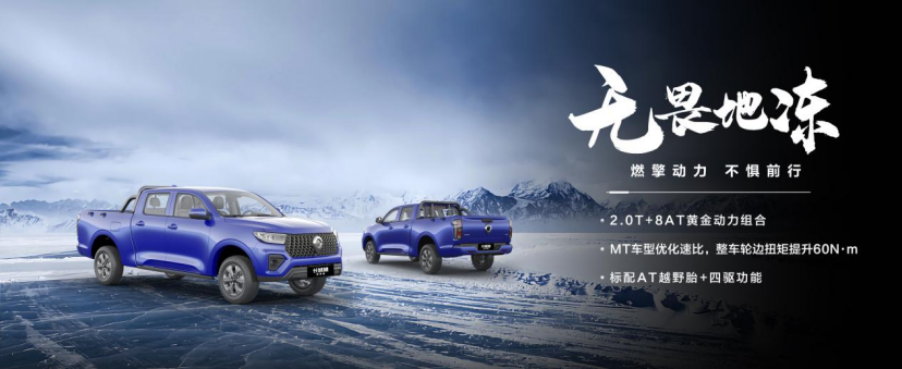 商用炮MT车型优化变速箱和前后桥速比,整车轮边扭矩提升60 N·m,有效提升冰雪路面的通过性;
