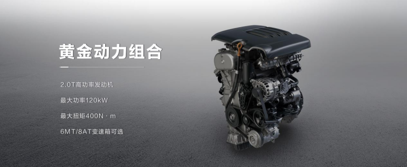 搭载“中国心”十佳发动机,2.0T柴油发动机,最大功率120kW;最大扭矩400N·m,配备6MT/8AT两种变速箱,形成黄金动力组合,澎湃动力时刻在线;