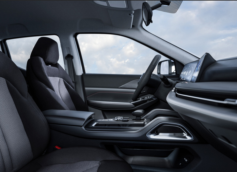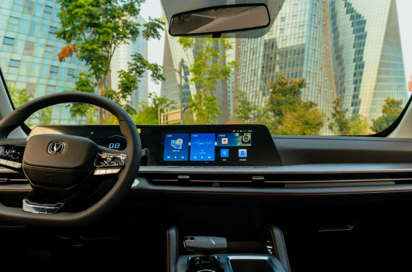 在以往用户的印象当中,作为「工具车」的皮卡内饰总是有着粗糙的形象,更别奢望是拥有科技配备了,但是长安F70蓝鲸版的到来,可能要刷新你的固有认知了。首先在材料上就足够有料,大面积的软质材料包裹看上去很有档次感,虽然在整体风格上依旧是一派硬朗风格,但是在配置上绝对称得上是丰富多彩的,其搭载了很多乘用化配置,譬如该车配备了时下乘用车市场比较流行的双联屏设计,官方称之为:镜湖式智慧双联屏,而这套一体式12.3英寸中控彩色大屏可以带来湖天一色的视觉观感,同时,8.1°的弧度设计不仅符合人类视网膜弧度,更彰显出人性化的驾驶关怀。要知道,在同级竞品中,部分车型配备的是3.5寸仪表+10.25
