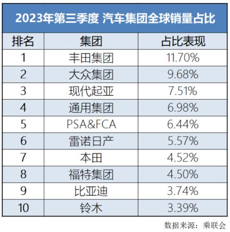 据乘联会日前消息,在2023年第三季度的全球汽车销量排行榜中比亚迪再进一步,超越铃木,位列全球榜单中的第9名,将中国车企在全球的地位提升到了新的高度。