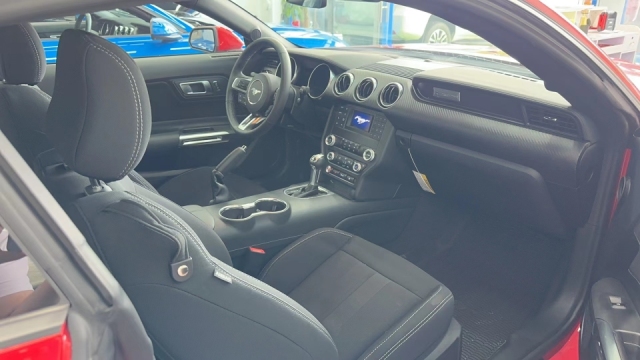 21款福特野马内饰上主要升级的地方其实只有真皮座椅,其它很多内饰板用的还是硬塑料。
