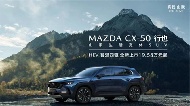 在延续CX-50行也“六好”SUV高价值基础上,CX-50行也HEV为用户带来“四大高价值”第一:驾控高价值。所搭载的e-AWD电子式四驱系统,前后双电机四驱设计,在提升车辆起步性能和驾驶稳定性的同时,配合混合动力系统高效强劲的动力输出,能够轻松应对雪地、砂石等多种地形。第二,驾趣高价值。马自达“人马一体”的驾乘愉悦让每一位用户都深有体会。CX-50行也HEV配有智能驾驶模式,增加运动和越野模式,为驾驶者提供了更个性化的驾趣体验。第三,节能高价值,得益于混动系统的加持和马自达独特的性能调教,实现百公里油耗仅为4.6L,为用户带来里程无忧超长续航。第四,安全高价值。在三电安全领域,CX-50行也HEV的三电系统严格遵循马自达在安全领域的标准,以高安全性和高可靠性为出发点,致力于为用户打造安全安心的用车生活。