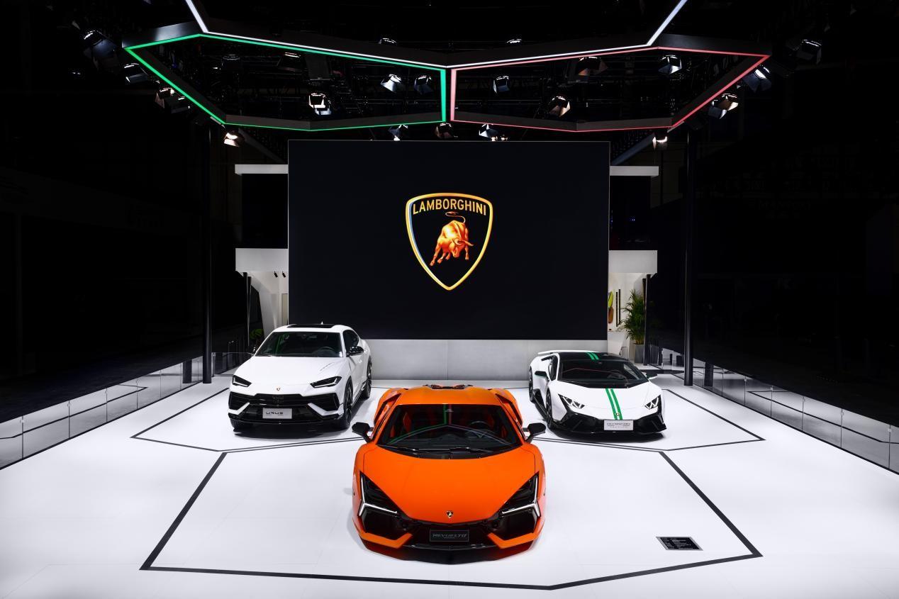 博基尼首款HPEV(High Performance Electrified Vehicle)高性能V12混合动力超级跑车Revuelto也亮相广州车展。搭载一台V12发动机和三台电机,同时匹配一款首次适配兰博基尼12缸跑车的双离合变速箱,能够产生1,015马力的综合输出功率。该车型在外观和内饰设计语言层面,“Y”型元素在前大灯、尾灯、大尺寸侧面进气口以及仪表盘中央位置反复出现;遵循“飞行员体验”理念,车型融入诸多航空航天元素,此外,兰博基尼Revuelto采用了从航空学汲取灵感、完全以碳纤维打造的全新单体式车壳,即单体式车身(monofuselage)。
