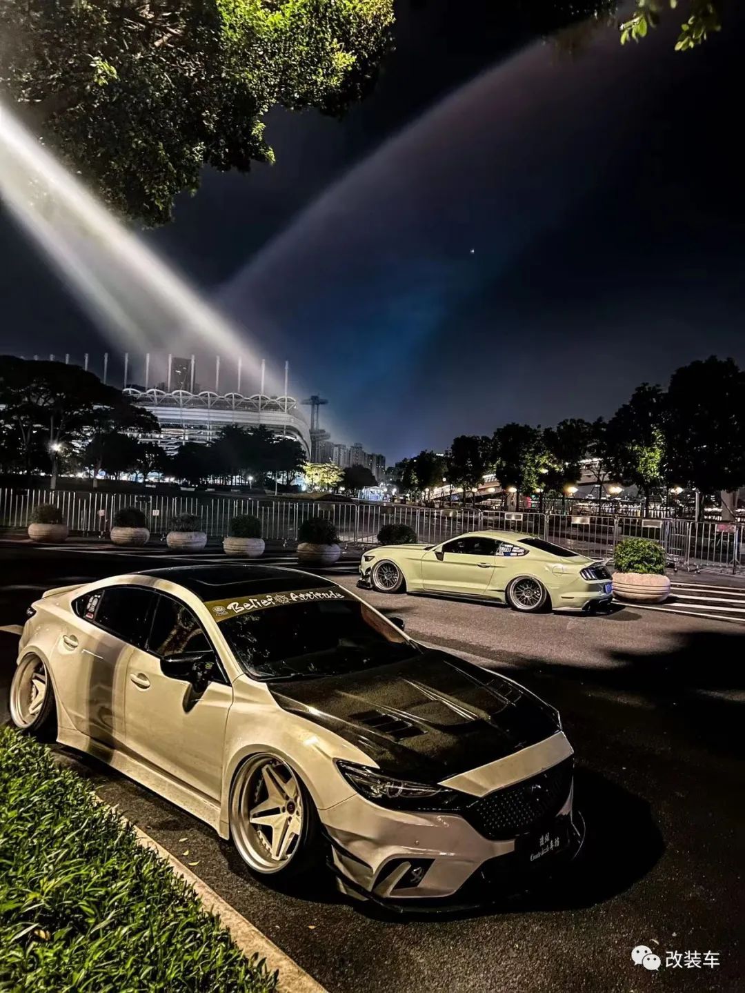 "对这辆车的改装状态整体都还挺满意的,最满意的就是宽体与轮毂搭配的很饱满,但又不会太夸张。"