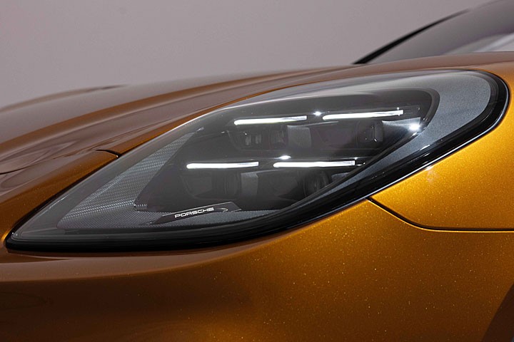 新一代 Panamera 车身尺码设定为长 5,052 mm、宽 1,937 mm 以及高 1,423 mm,其中在车头及车牌框上方对应新动力系统所需新增进气口设计,重新设计的侧窗线条亦强化轿跑流线特色,后窗外缘则与车身轮廓切齐,进一步强化车尾线条平衡感。保时捷也将矩阵式 LED 头灯系统列为 Panamera 的标配项目,而每组头灯具有超过 32,000 像素的高解析 LED 矩阵式头灯系统则列为选配。这套系统提供多项全新的灯光科技,象是专用车道照明,其照射范围最高可达 600 公尺。