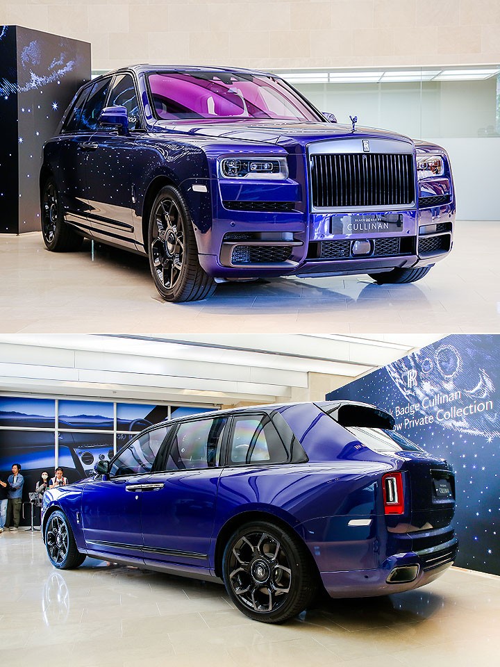 以距离地球表面 62 英里 (约 100 公里)、用来界定大气层与外太空之「卡门线 (Kármán line)」为设计灵感所打造的 Black Badge Cullinan Blue Shadow,是 Rolls-Royce 客制化中心以 Black Badge Cullinan 为基础所开发、全球仅有 62 辆 (呼应地表与卡门线距离) 的限量典藏版车型,拥有一个非常美丽的中文车名:「幻蓝谧影」,但全球皆已完售。