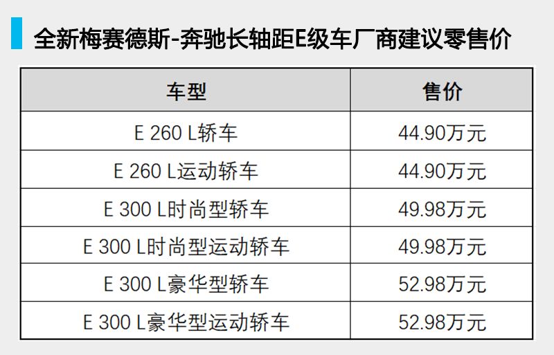 12月14日,全新梅赛德斯-奔驰长轴距E级车在北京正式上市,6款车型的厂商建议零售价为44.9万至52.98万元。